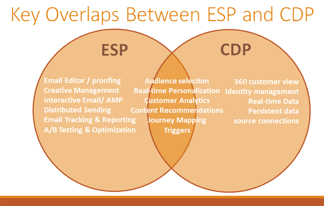 First, there are a lot of ESPs who now come with what I call a “CDP Inside”. In other words, they have built a fully integrated CDP platform to go along with the ESP platform.