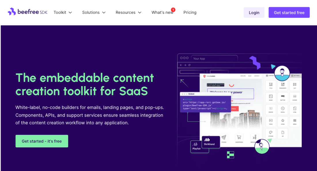 Beefree is a no-code design tool to quickly create content and designs. Beefree’s visual builders are used to design emails, landing pages, one-page sites, and more. They deliver design flexibility with a great user experience, you control design elements with handy features like editing content directly in mobile view.