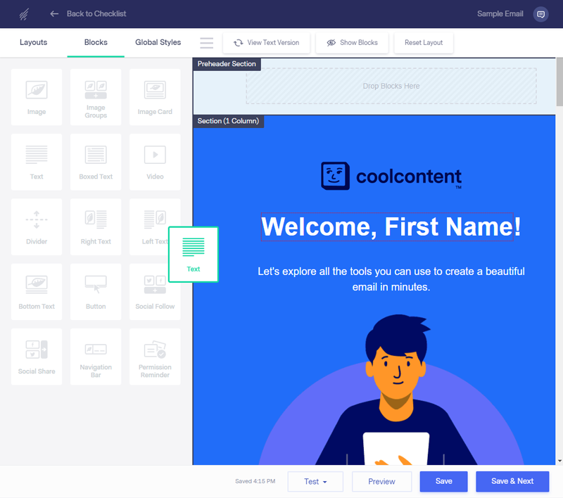 Create branded, responsive emails with a sleek drag & drop email builder. Choose email marketing templates from an extensive library, or start from scratch. More sophisticated users, like marketing agencies, can easily add and edit HTML emails.