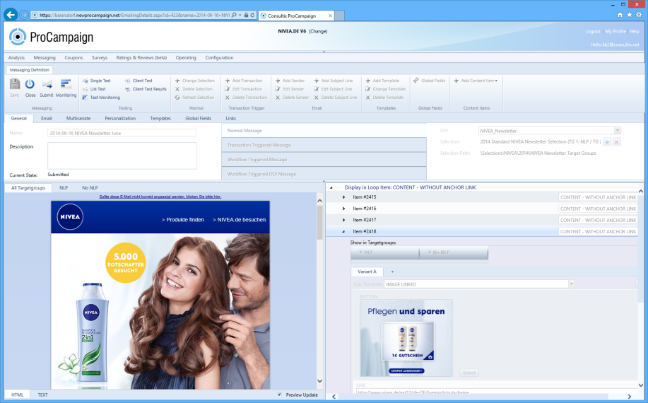 Within ProCampaign there are various features to enhance your Email Marketing such as campaign automation, personalization or multivariable testing. The tooling also includes Customer Lifecycle Journey, Coupon & Bonus Programs, Ratings & Reviews, Behavior-based Marketing, Business Intelligence, Big Data.