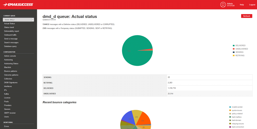 EmailSuccess is an MTA designed to deliver high email volumes, giving the business full control over Speed, Latency, Reliability and Deliverability parameters.