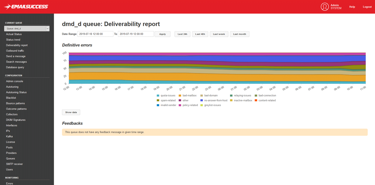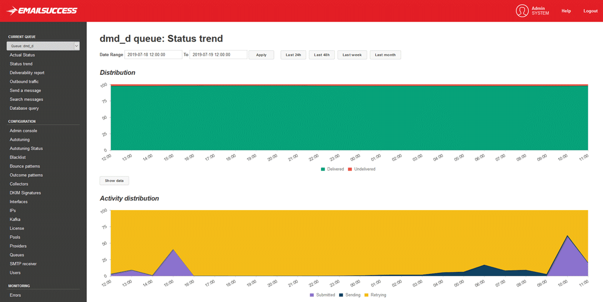 Automate parameter tuning based on individual ISP technical expectations to optimize your deliverability with minimum effort. (Provider Specific Configurations, Autotuning, WarmUp, IP Blacklist Monitoring)
