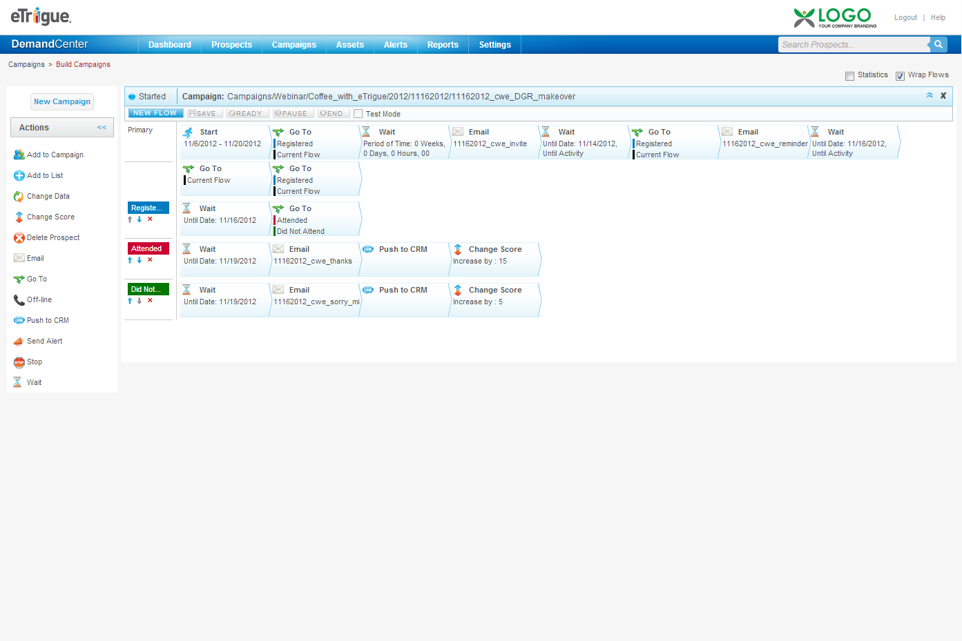 eTrigue DemandCenter Marketing Automation is a cloud-based marketing automation provider featuring easy-to-use campaign building. eTrigue aims to makes it simple for small marketing teams to manage all online marketing efforts from a single dashboard.