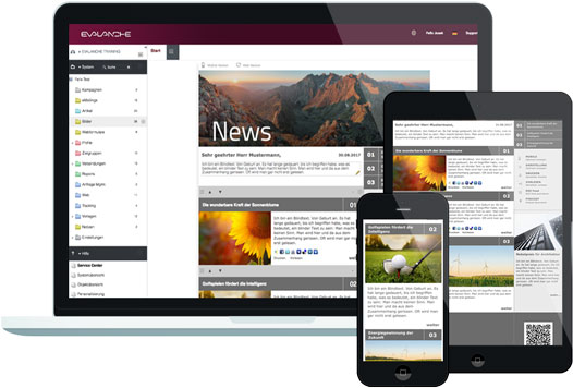 Creating complex, cross-media newsletters can be easy for web editors - without requiring any programming knowledge. Enter texts and images for newsletters using the CMS-editor via the web interface. In addition, the Evalanche-Mobile Check checks whether newsletters are optimally displayed using Blackberry, iPhone, iPad, Windows Mobile, Android or Symbian OS. This makes it easy to create newsletters and emails that are automatically adapted for the respective devices.