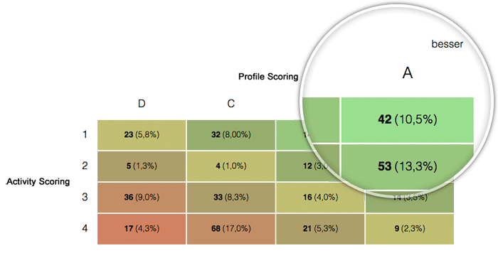 With Profile Scoring, you can evaluate the quality of leads based on profile properties such as a person’s position in a company or the industry sector. You can use the explicit profile information or profile scoring to display Buyer Persona concepts. With Activity and Content Scoring you can validate the interests of your leads based on their click and information behavior.