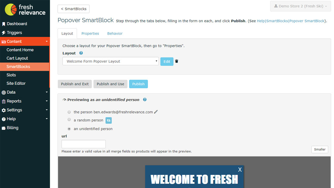 Fresh Relevance is a real-time personalization platform to collect customer data, analyse and personalize. The platform gathers data wherever customers go, then brings it all together in one place with existing data, providing real-time behavior and insight combined with the power to act on it.