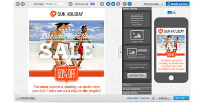 Responsive design will automatically adjust your emails and pages to every display device: smartphone, laptop, tablet or desktop