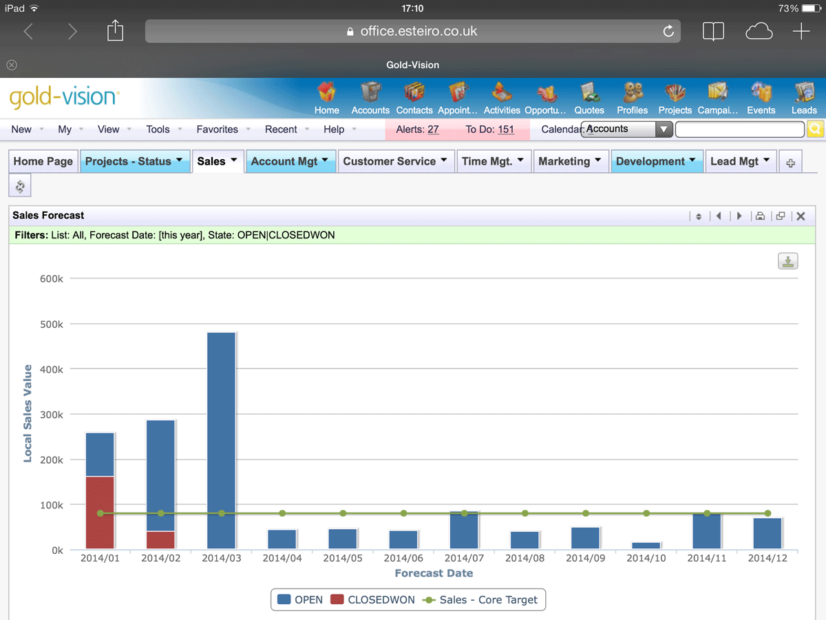 Esteiro Business Solutions is both the software author of Gold-Vision, and the organisation who implements & supports the CRM solution. Our teams’ background is based on business and systems experience, matched by technical knowledge. We work with businesses to build a solution which enhances existing processes and improves sales or customer service performance.