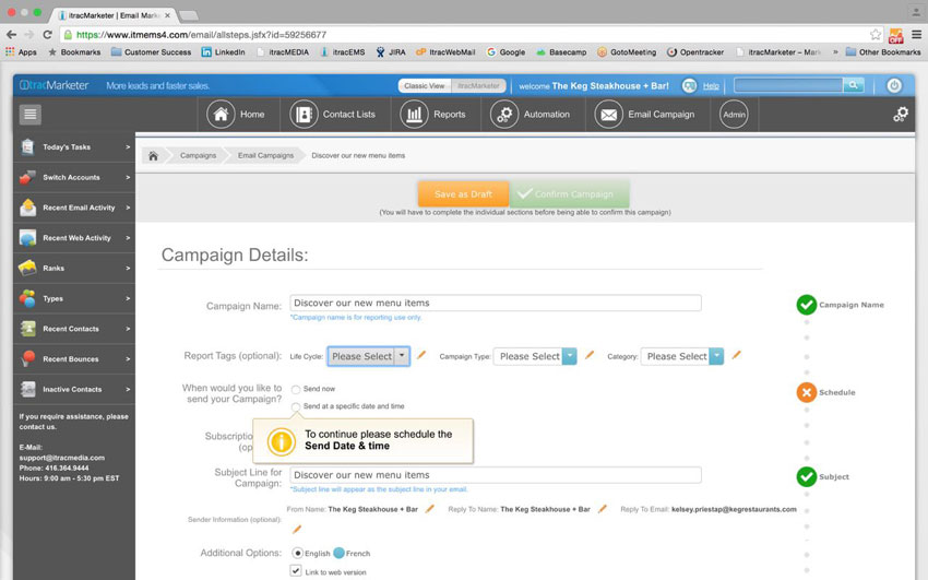 itracMarketer offers automated campaigns and lead capture, features to amplify customer acquisition and retention, and optimizes marketing performance. itracMarketer is a solution that adapts to business operations and interactions with customers while integrating with simple and complex business systems.