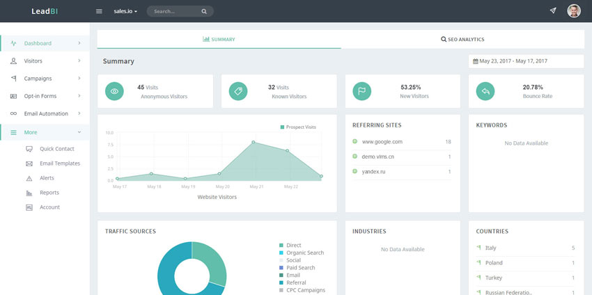 LeadBI is a marketing automation software application that uncovers information about your website visitors and turns them into leads.
